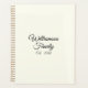 Nome da família de marfim e script personalizado preto e data estabelecida personalizado Planejador de agenda personalizado personalizado. Texto preto personalizado sobre fundo de cor sólida comum de marfim. Este planejador trabalha como excelente como uma agenda familiar, empresarial e profissional.