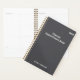 Gift for yourself, a co-worker or team member that is elegant in its simplicity and essential for keeping your professional life organized. A dark gray background creates a stunning Planner or Appointment Book that looks luxurious all year long. Different fonts coordinate beautifully in silver with deeper shadows. The year tucks into a top corner, and the usage tag: Planner, Appointment Book, Journal, Diary or however YOU plan to use this item appears in larger lettering upper center. The personalized name centers below in an elegant serif font that adds an upscale premium tone. On the back is contact information (phone and/or email) in case this indispensable tool is ever mislaid or lost. Below we've added a white wren and gold star that you can easily swap for your own logo or delete (or keep if you like it). It is essential in your professional life to stay organized in order to achieve your goals and maximize your potential. This workhorse professional day planner helps you track important days and notes at-a-glance. Its easy planning and scheduling design is certain to make each day, each month more proficient all year long for academics: teachers, professors and coaches as well as CEOs, executives, business owners, pastors, secretaries, doctor's offices, or anyone with a hectic schedule to tame – professional or personal.