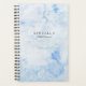 Planejador elegante com seu nome e descrição sobre um fundo de cor azul-d-água pintado manualmente.