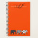 Elefantes modernos, negros e brancos, com padrões legal em combinação com o fundo vermelho de lava laranja brilhante e tenra. Vibrante, artístico, simples, adorável planejador, com nome personalizado no topo.