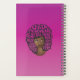 Esta design apresenta "Rainha, fenomenal, bela, inteligente, mágica, chefe, amorosa, sexy, independente, engraçada, criativa e forte" aninhada em seu afro, com colares em camadas em um fundo magenta.
