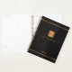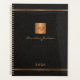 Planeador personalizado na moda monograma, com aparência exclusiva de luxo, com um quadrado brilhante metálico de cobre de ouro e linhas sobre uma na moda de classe de couro preto. +++++++ Personalize-o com o seu texto, o seu nome e as iniciais do monograma.
