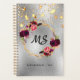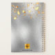 Um fundo com aparência de prata falsa com estrelas de ouro falsa. Decorados com uma falso armação geométrica dourada e flores, florais, cor-de-rosa e rosa. Personalize e adicione suas letras monográficas, iniciais. Letras pretas coloridas. Perfeito para a escola, o trabalho ou a organização da sua vida pessoal/familiar.