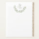 Notebook Baptism Planner com Greenery Motif. Este design apresenta uma ilustração aquosa das folhas de eucalipto, flores brancas, ouro e anjo bebê.