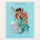 Sereia de cabelos vermelhos vestindo joias de ouro. A sereia tem uma cauda verde e azul. Ao redor da esmeralda está um cavalo marinho, conchas de água e conchas de água geladas em um pano de fundo azul