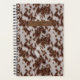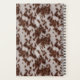 Padrão pintado de cowhide branco e castanho com seu nome no design de retângulo impresso em couro fino na parte superior da frente.