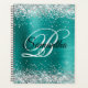Agenda Faux Shiny Silver Glitter Aqua Teal Foil Monograma