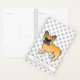A ilustração original do desenho de Destei de um cão da raça Bulldog francês, de cor de casaco bonitinha. Há também uma área de texto personalizável para um nome ou título. O fundo tem um padrão de cinza leve de estampas de pata de cachorro.
