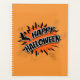 A ilustração do estilo cômico Feliz de Halloween com decoração de design de texto, morcego e estrelas em fundo de meia-tona. É possível mudar a cor de fundo e adicionar uma diferente à design com sua escolha.