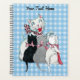Este planejador é uma xadrez azul e branca com uma feliz gata-mãe branca sentada com seus três gatinhos bonitos que são brancos, pretos e cinzas vestindo arcos ao redor de seus pescoços. Personalize seu texto na frente com o modelo.
