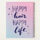 Esta design apresenta a frase relacionada ao cuidado com o cabelo "Happy Hair Happy Life".