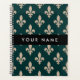 Agenda Fleur de Lis, Beige on Green, Royal, Your Name