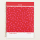 Esta capa animada apresenta um fundo vermelho ousado espalhado com flores cor-de-rosa suaves para um visual alegre e contemporâneo. O layout limpo equilibra o detalhe divertido com a simplicidade moderna, tornando-o fácil de desfrutar todos os dias. Um estilo brilhante e edificante que adiciona personalidade à sua rotina de planejamento.