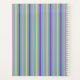 This design features stripes in dark purple, pinkish purple, and peach on a mint cold green background and coordinates with the Floral Medley and Geometrical Medley collections.
