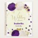 Romântica, roxo real e flores brancas com folhas de ouro, planador de casamento botânico Os detalhes da brilha são simulados.
