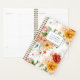 Planeador floral personalizável com buquê floral de péonias, rosas e margaridas roxas, cor-de-rosa, amarelas e vermelhas, com sotaques verdes. Personalize adicionando nomes e outros detalhes. Este planejador botânico será perfeito como presente personalizado para o Natal, aniversários e graduações.