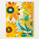 Bloco de flores de arte folclórica amarela e turquesa. Adicionar iniciais na área personalizada.