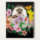 Um ouriço bonito sentado entre flores coloridas de verão num pano de fundo preto