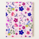 Flores simples, de arte popular em azul, laranja e rosa, com borboletas amarelas, em fundo cor-de-rosa criam um planejador muito bonito.