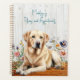 Planejador amarelo de lab para personalizar na capa. Planejador diário para amantes de cães com um design rústico de madeira clara. Inclui um nome no título do planejador escrito em letra cursiva fina e azul. Escolha um tamanho, com capa dura ou macia.