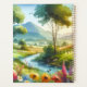 Um vale de primavera vibrante explode com cor nesta paisagem cênica de aquarela, onde flores silvestres florescentes dançam ao longo de um córrego sob árvores altas e luz de ouro mole. Colinas rolantes e montanhas distantes desaparecem suavemente no fundo, evocando a alegria tranquila das manhãs do interior. Suavizados matizes florais e texturas pareadas trazem uma sensação de harmonia, calor e encanto rústico, perfeito para adicionar serenidade natural a qualquer espaço. A IA gerou trabalho de arte.