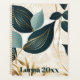 Folhas abstrato verdes com sotaques dourados sobre fundo esbranquiçado criam um belo planejador que você adorará usar.