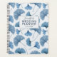Personalize este design elegante e organize-se para o seu dia especial. Apresentando uma folha de gingko tropical em azul empoeirado em um padrão em um fundo azul claro. Mude nome e data e você tem o planejador perfeito de casamento.