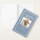 Organizem-se para o vosso casamento com este moderno planejador de casamento! Design apresenta um simples design minimalista contemporâneo com uma borda de dois quadros em branco nítido sobre um fundo azul empoeirado. Adicione a sua imagem de noivado favorita e a data de casamento futura para personalizar seus detalhes em letras quicas e roteiro. A parte de trás do planejador combina em azul poeirento sólido.
