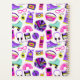 Pattern with 90s and Y2K second hand treasures that you could find on a thrift store like games, sneakers, floppy disks, cassette player, waist packs, phones and clothing.