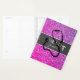 Futuro Nurse Medical Caduceus Purple Glitter Planner Projetado com fundo brilhante roxo e faixa horizontal de cinzas larga no centro de ambos os lados do planejador. O lado frontal tem uma silhueta estetoscópica preta e símbolo caducius branco com "futura enfermeira" em letras brancas esbranquiçadas. Personalizado com o nome de enfermeiro estudante em letras escritas à mão em um script de caligrafia branca. Faz uma ideia de presente de excelente para uma garota que começa a escola de enfermagem.