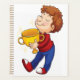 Mantenha-se organizado e inspirado com este planejador espiral com um rapaz de desenho animado abraçando um troféu de ouro. Com muito espaço para juntar notas, programações e metas, este planejador combina funcionalidade com charme lúdico. Um presente de excelente para estudantes, professores, ou qualquer pessoa que adora celebrar suas vitórias diárias.