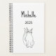 Planeador de desenho 2025 com design de gatinho preto e branco. Com letras negras personalizáveis de tipografia, você pode adicionar seu próprio nome e ano. Excelente por adicionar um toque bonito para ficar organizado.