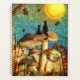 Uma bela imagem de dois gatos sentados sobre um cogumelo gigante em uma floresta cheia de cogumelos observando as folhas do outono caírem contra o sol e o céu azul para criar uma maravilhosa foto de uma terra natal. .