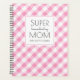 Este moderno e moderno planejador contém texto lendo, "Super Homescultando Mãe." O fundo contém um padrão simples de xadrez em rosa e branco. Um modelo de texto está incluído para personalização, fazer este é um presente perfeito! Excelente para alguém que precisa se organizar!