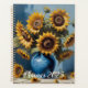 Linda ilustração dos girassóis no planejador de vaso azul.