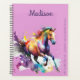Design brilhante e colorido com um belo cavalo correndo no cobrir. Personalize facilmente seu diário de garotas de cavalo com seu nome em roteiro e descrição e/ou título do planejador. Esta design é uma de uma coleção de cavalos de arco-íris que devem ter de volta à escola.