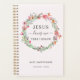 Este design apresenta uma coroa aquosa com flores roxas e folhas verdes, cor-de-rosa. Com as palavras que Jesus me ama, isso eu sei.