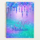 Bloco de notas com brilho azul púrpura de ombre púrpura pingando monograma. Legal para escola, trabalho ou diário ou diário! Para torná-lo extra especial, ele também é monograma e personalizado com nome, iniciais ou qualquer texto que você quiser, clique no link "personalizar mais" e use a ferramenta design para modificar o design, se você quiser. Bela, moderna e legal notebook para escola, faculdade ou até mesmo suas revistas. Mostre o seu estilo pessoal, fique em voga, moda e sinta-se na moda em volta dos seus amigos com um design único no seu notebook ou personalize-o sobre outro produto de sua escolha. Seja para dia de os namorados, Natal ou como presente em geral, faz uma ideia de presente excelente para qualquer garota que ama coisas modernas e brilhantes. NOTA: Estes são gráficos impressos - sem brilho real, joias ou peças levantadas.
