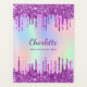 Um arco-íris, fundo holográfico colorido de unicórnio. Decorado com gotas de brilho sujo em roxo e rosa. Personalize e adicione um nome, letras cor púrpura e o texto na coluna. Perfeito para escola, trabalho, família, de volta para a escola. O nome é escrito com um moderno estilo escrito à mão.