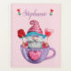 Este notebook adorável apresenta um gnomo engraçado com um bigode grande e barba comprida, sentado em uma equipe roxa com um coração cor-de-rosa. Ele está vestindo óculos cor-de-rosa e um chapéu listrado vermelho e branco com uma borda azul. Ele está segurando uma rosa vermelha e um chocolate cardíaco. É personalizado no topo com o seu nome com um rosa em forma de coração em ambos os lados. O lado de trás tem o mesmo cor-de-rosa com fundo branco de bolinhas e a palavra AMOR com gnomos se esgotando.