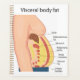 A gordura visceral e a gordura subcutânea acumulam-se em torno dos órgãos. Medicina e diagrama de saúde sobre gordura da barriga.