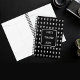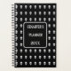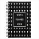 Padrão de crânios brancos sobre fundo preto. Este planejador permitirá que você planeje suas tarefas da maneira que quiser.Personalize adicionando seu nome, título e ano.