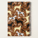 Recursos de design: Cães Dane-Grande Ilustrados em um padrão repetitivo com estampas brancas de pata e ossos de cachorro sobre um fundo marrom. O produto personalizado pode ter qualquer nome ou frase adicionado ao design. Altere a fonte, o tamanho da fonte e a cor da fonte para o seu gosto usando a ferramenta personalizar.