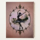 Harmonia do Movimento A bailarina à luz das estrelas. A elegante silhueta de uma bailarina é representada em uma pose graciosa com braços estendidos e delicados arabescos sobre suas pernas. Os contornos de sua figura são fluidos e harmoniosos, captando perfeitamente a graça da dança. O vestido é decorado com um padrão de estrela giratória e, adicionalmente, uma sutil estrutura de folhas enfeita o vestido, que traz elementos orgânicos e transmite um sentimento de proximidade com a natureza e a beleza etérea.