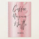 Um fundo rosado, giro, que apresenta um rosto feminino com uma grande tipografia moderna é a base para este planejador escolar personalizado. As palavras na frente leram 'Café, Máscara, Hustle' e o nome é facilmente alterado para seu planejador personalizado, ou removido completamente.