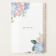Planeador elegante e feminino com buquê floral de aquarelas azul e rosas cor-de-rosa pinceladas com acentos verdes. Este planejador floral será perfeito como presente personalizado. Personalize adicionando nomes e outros detalhes.
