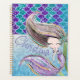 Este planejador personalizado glamouroso apresenta um tema de sereia. Uma ilustração sob a imagem do mar é ilustrada na porção inferior com uma sereia nadando debaixo da água. A parte superior apresenta escalas roxas e de lenços de sereia. Um nome de exemplo é impresso perto da parte inferior, que você pode personalizar para incluir seu próprio nome ou texto personalizado.