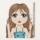 Um símbolo de paz de fazer de menina super bonitinho gestos com os dedos. Gráfico de desenhos animados de palhetas de olhos azuis e longos, com uma camada de nuvens azuis de fundo de cor d'água. Parte da minha série de desenhos de arte impressionante. Excelente de espalhar esperança, harmonia, poder feminino, liberdade, amizade, saudação amigável, aceitação, calmidade, shalom, etc. Ilustração desenhada à mão por Donna Leger.