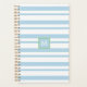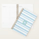 Agenda Imagem do Monograma Chic, Listras Brancas e Azuis