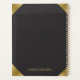 Imagem de um impressão de couro preto, com sotaque dourado nos cantos.